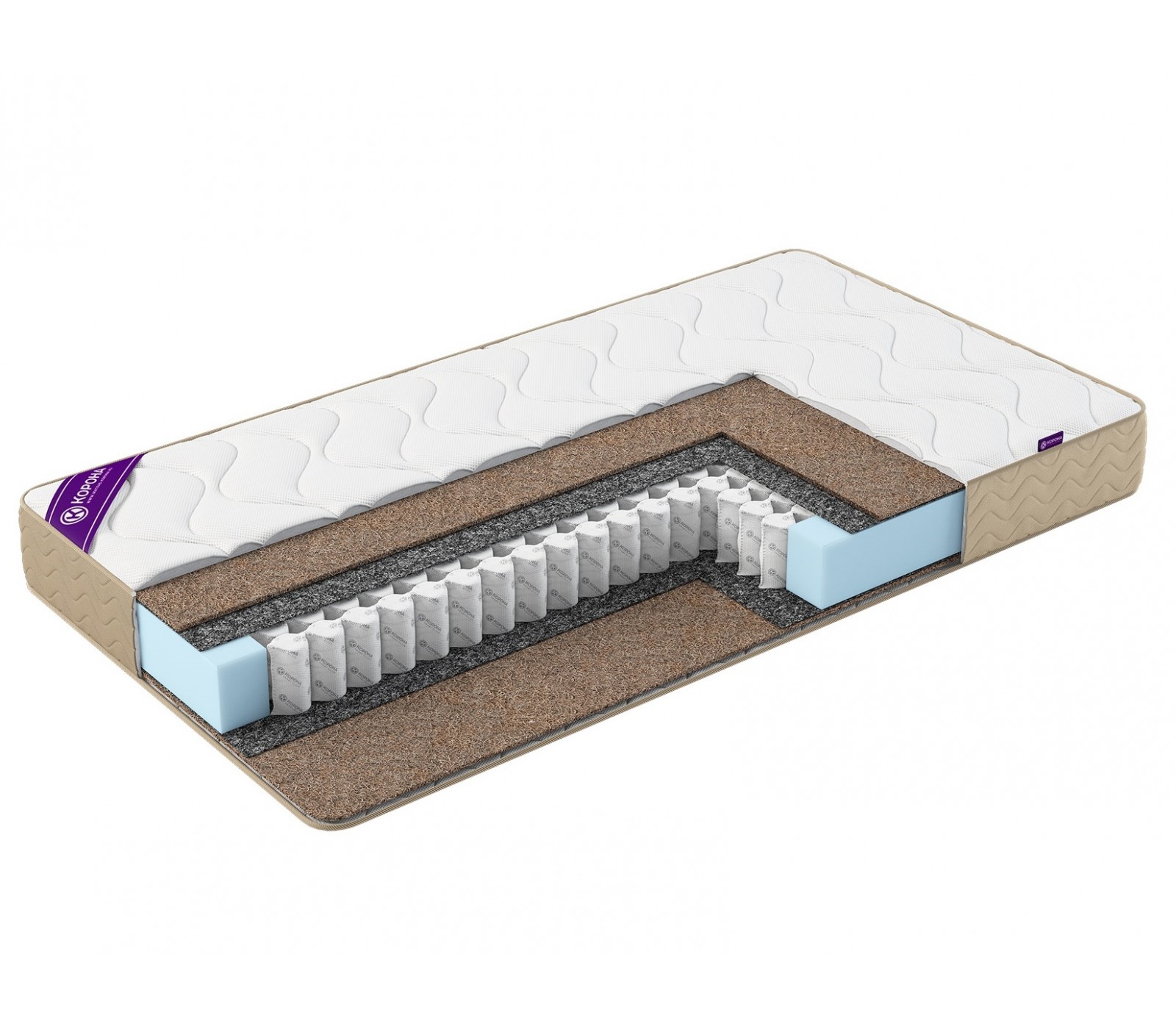 - Латексированная кокосовая койра – 10 мм. Натуральный материал для упругости и жесткости матраса.