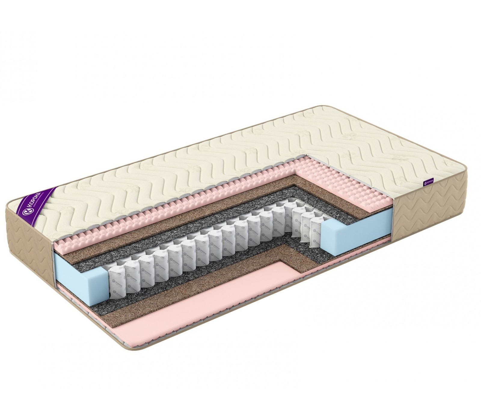 - Латексированная кокосовая койра – 10 мм. Натуральный материал для упругости и жесткости матраса.