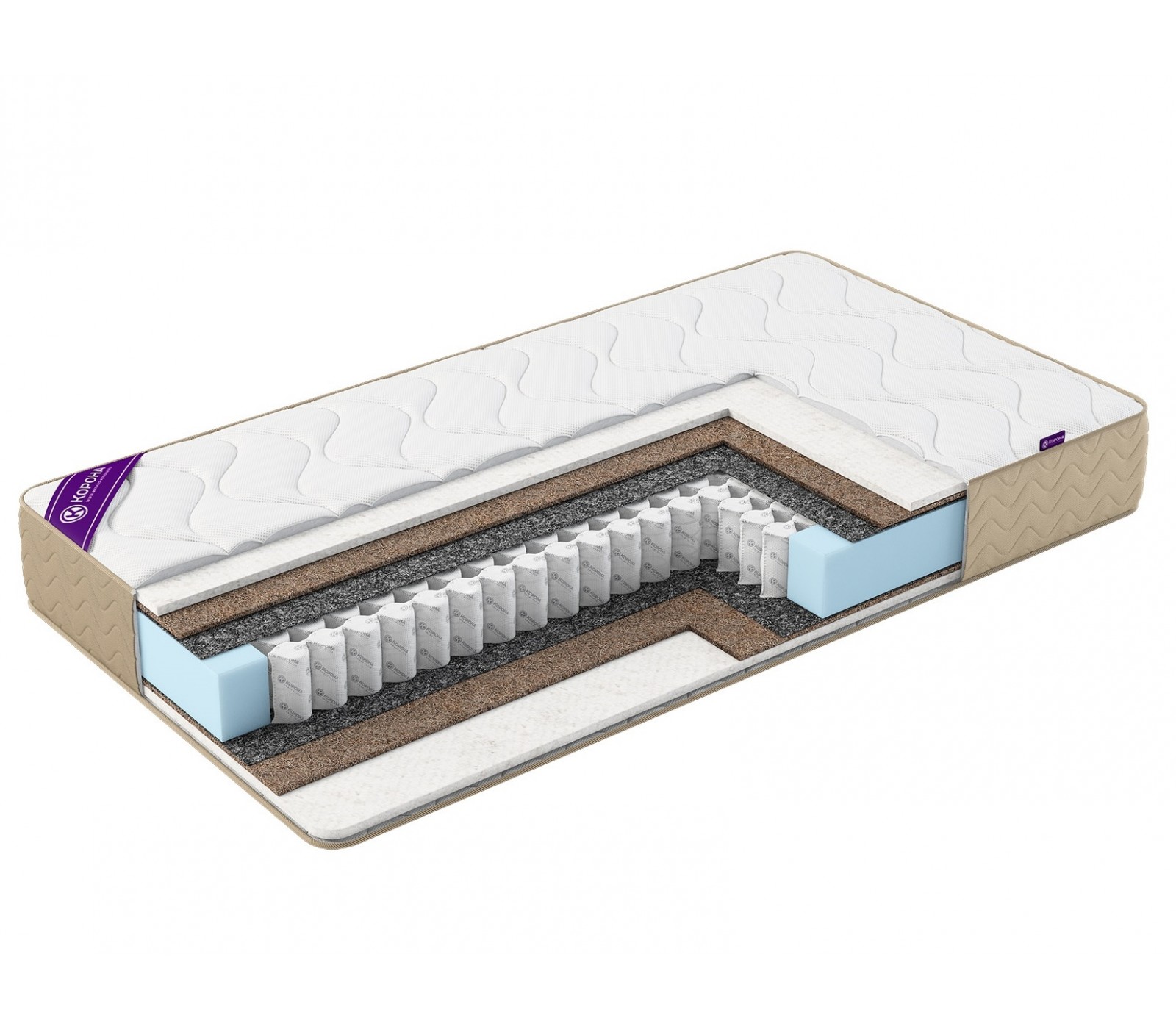 - Латексированная кокосовая койра – 10 мм. Натуральный материал для упругости и жесткости матраса.