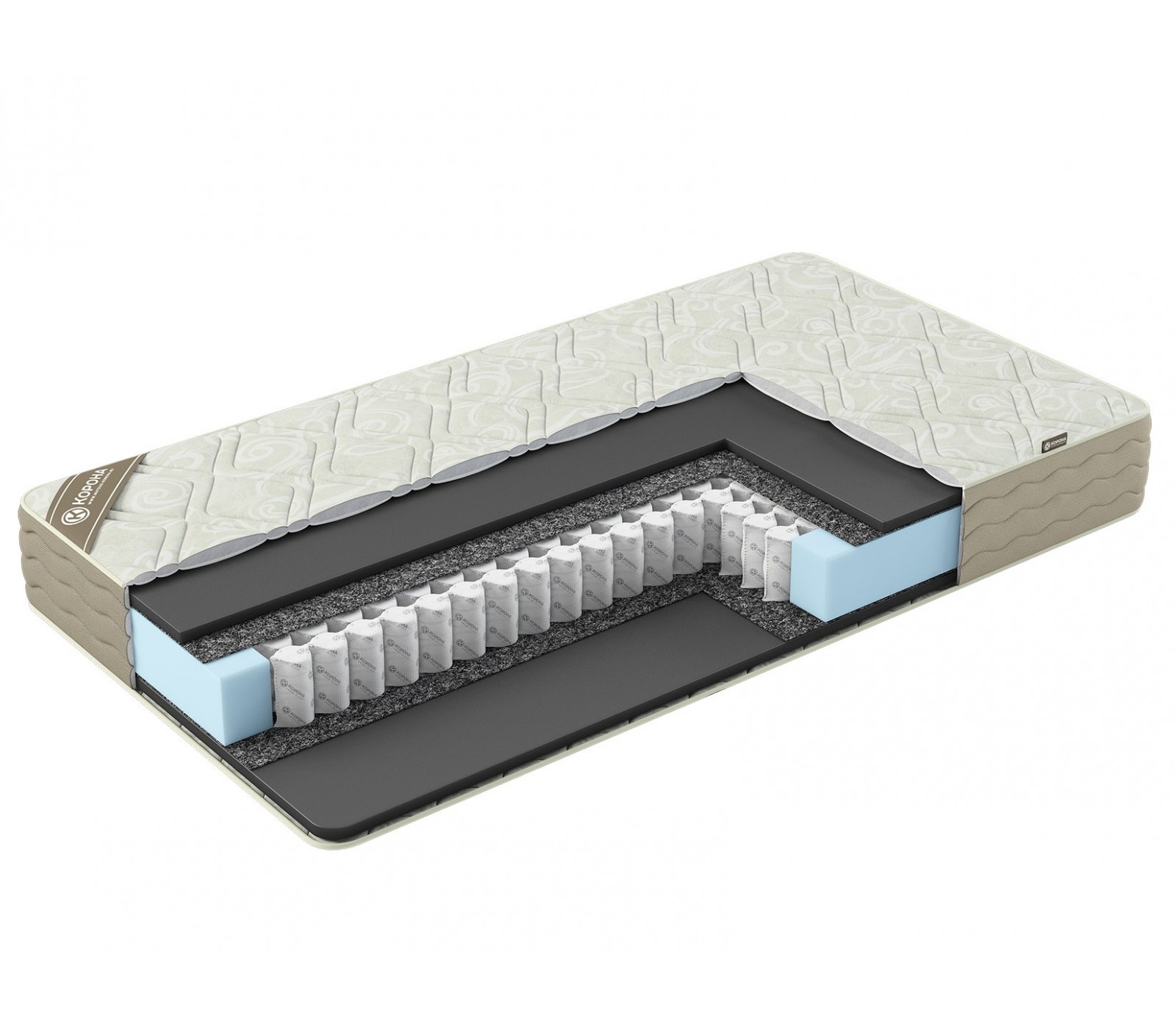 Чехол: Трикотаж, стеганный на синтепоне (300 гр/ м2) и ППУ 10 мм. для пышности и комфорта. Боковины из обивочного жаккарда.